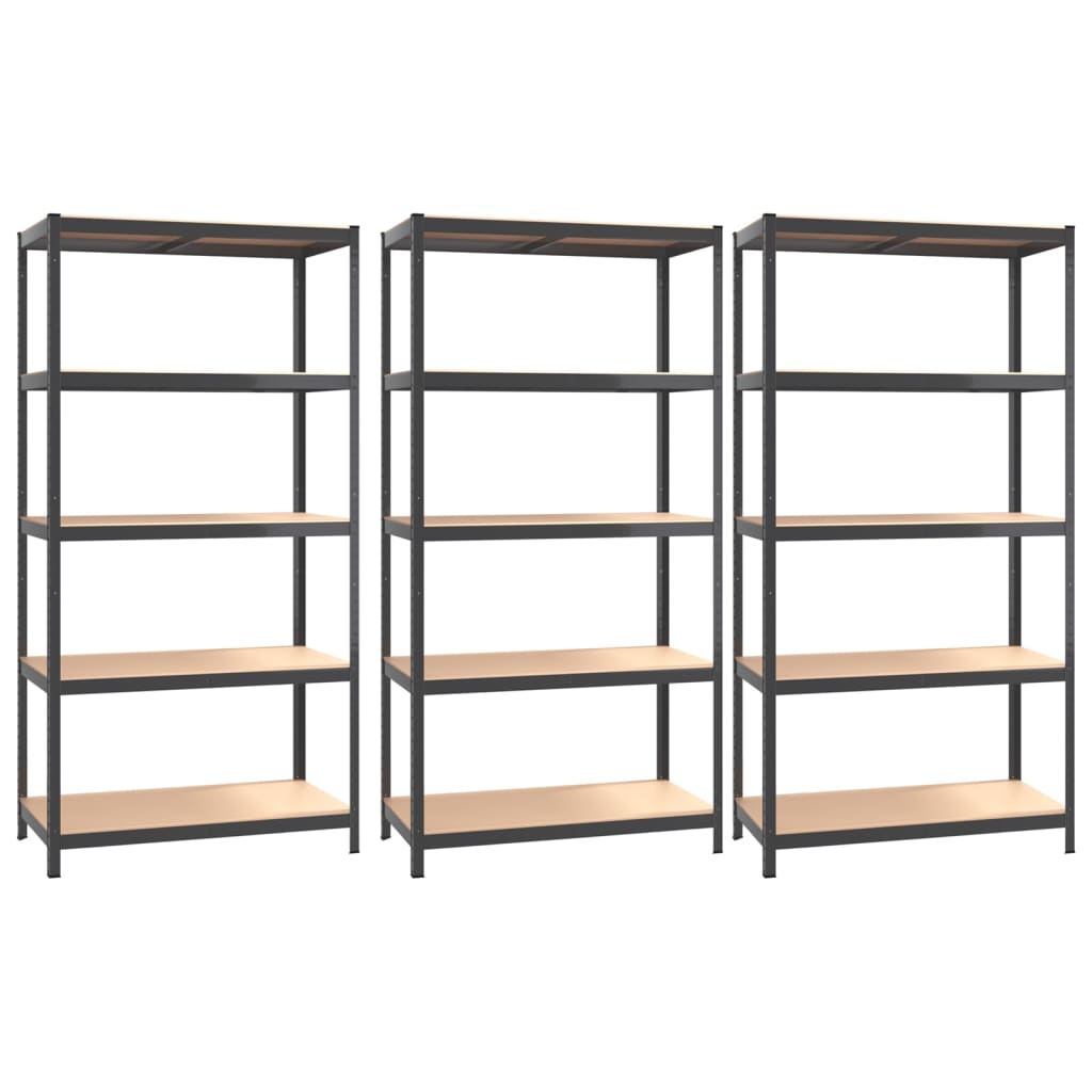 5-Layer Shelves 3 pcs Anthracite Steel&Engineered Wood