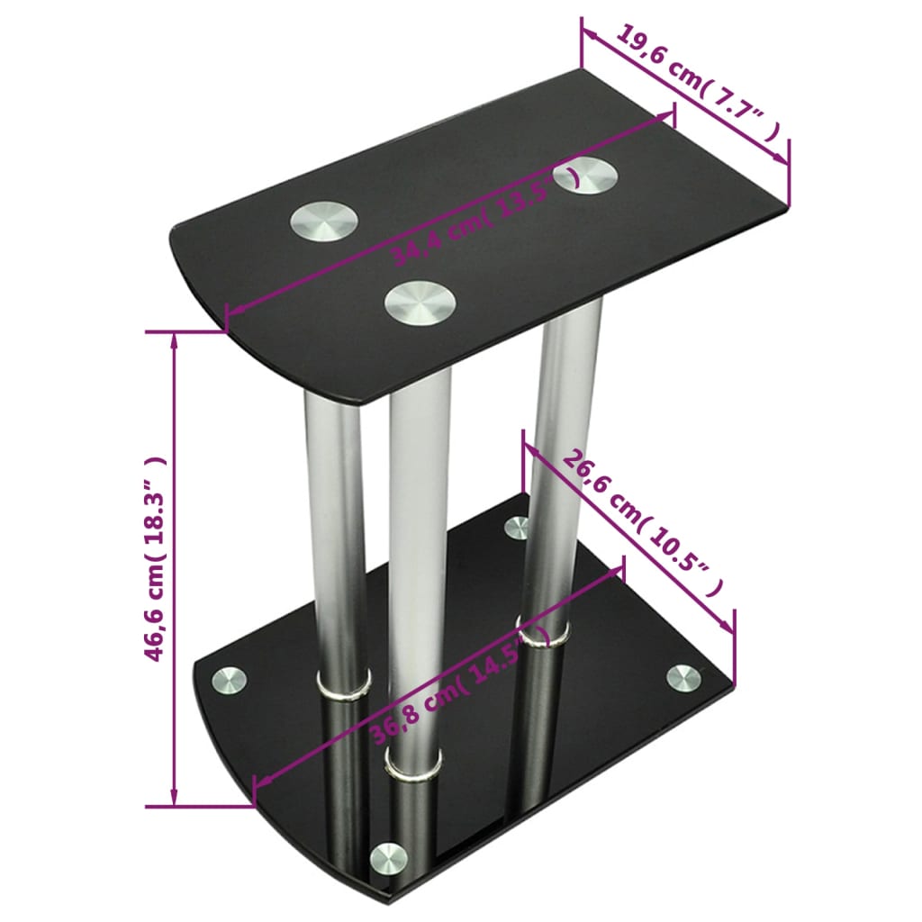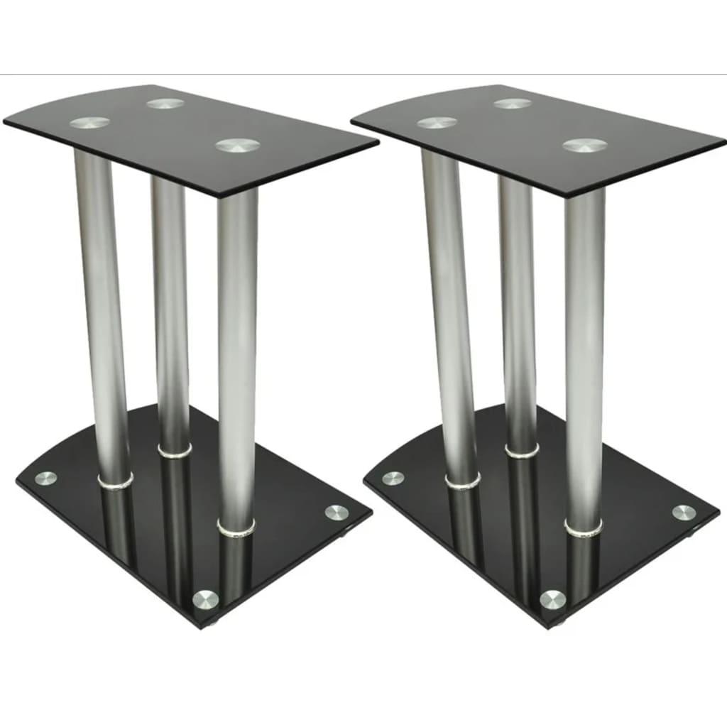 The top and base plates of the Stand are made of safety glass. There are three aluminum pillars on each stand, which will provide sturdy support to the speakers. The modern elegant design blends well with any contemporary home environment.