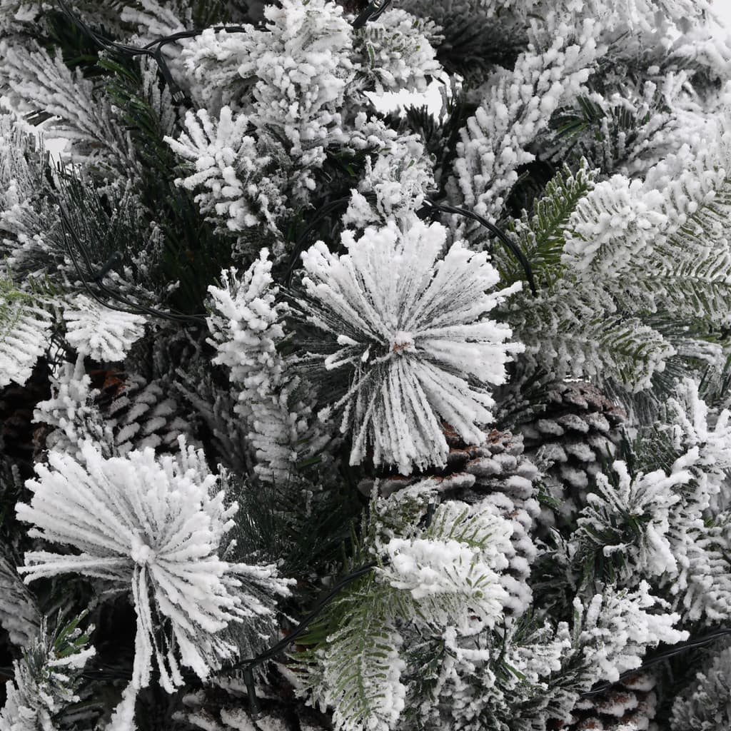 This pre-lit Christmas tree stands tall at 76.8 in, making it a lovely centerpiece for any holiday bash. Its vibrant green and pristine white design brings in the beauty of a winter wonderland, complemented by cute pine cones and soft snow that make it look super realistic. Perfect for your living room or dining area, it not only brings a festive vibe but fits in wonderfully with both modern and traditional home styles.