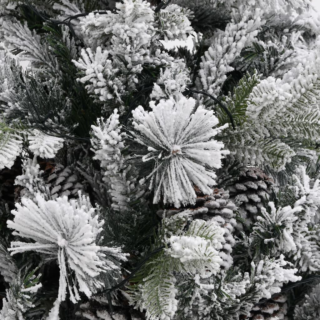 This Pre-Lit Christmas tree shows off a classic design that creates an enchanting holiday vibe in any home. Standing 88.6 in tall and decked out with beautifully flocked snow and decorative cones, it becomes the star of Christmas celebrations, welcoming guests and spreading festive cheer with its warm LED lights.