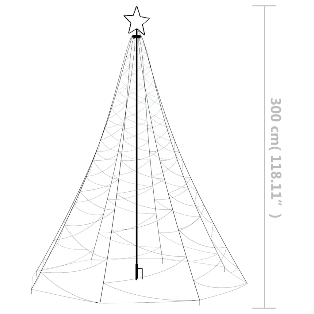 The light tree consist of 500 energy-saving LEDs, which emits a bright light. The thick metal post ensures its stability. This Xmas tree has LED strings bundled with each other for a connection glow of lights. Designed with 8 different effects: a combination of all the effects, slow-glow, twinkle/flash, in wave, chasing/running water, sequential, steady on and slow fade, it beautifully lights up and creates a magical holiday atmosphere. This Christmas decoration is water-proof and therefore suitable for both indoor and sheltered outdoor use. It comes with a complete set including a thick metal post, 8 bundled LED light chains, 10 cable ties and 8 spikes to set up the big LED light tree.