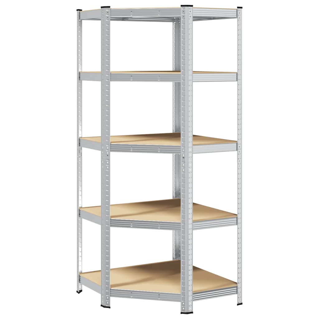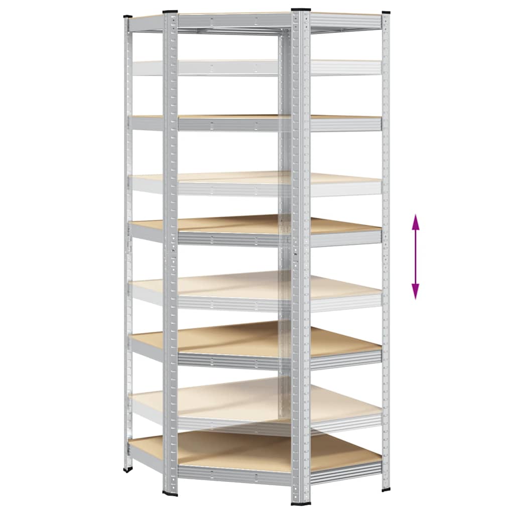 5-Layer Corner Shelf Silver Steel&Engineered Wood