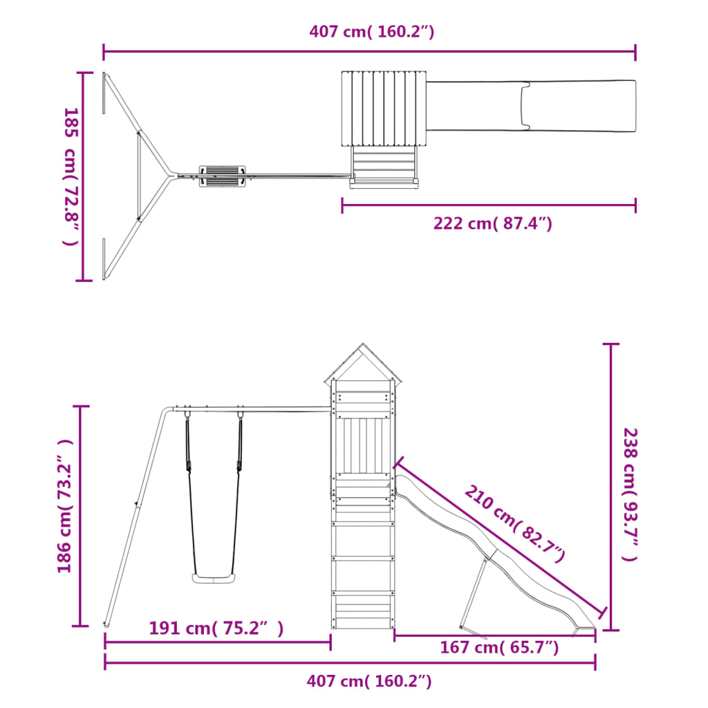 This rustic wooden playground set is a magical outdoor spot where kids aged 3 to 8 can play for hours. With solid pine wood and bright colors, it sparks adventure, exploration, and creativity while making your garden look fab.