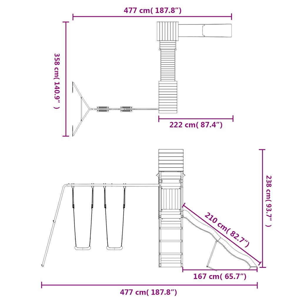 Robust Construction: Made from solid pine wood, this playset is built to last, with secure anchors included to prevent tipping accidents, so parents can relax. Wavy Slides: Kids will love the exciting twists and turns of the wavy slide, measuring 82.7 in, making it a fun way to exit the towers. Double Swing Set: The saddle-style double swings provide a safe spot for two kids to swing together, promoting friendships and social skills. Spacious Activity Area: Measuring 140.9 in x 193.7 in x 93.7 in, there’s loads of room for several children to play safely together, promoting outdoor fun. All-Weather Resistance: Designed for the outdoors, it’s UV resistant, so kids can play comfortably in the sun year-round without worrying about wear and tear.- Color: Blue
