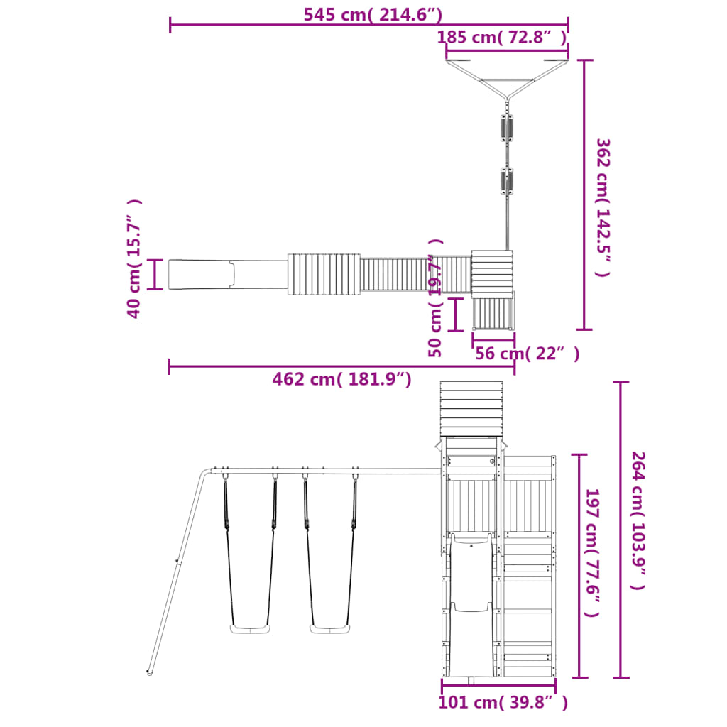 This outdoor playset is a fantastic addition to any backyard, designed for kids aged 3 to 8 years. The rustic style of the treated pinewood gives a warm, adventurous vibe that enhances the playground experience, ensuring hours of enjoyment and activity.