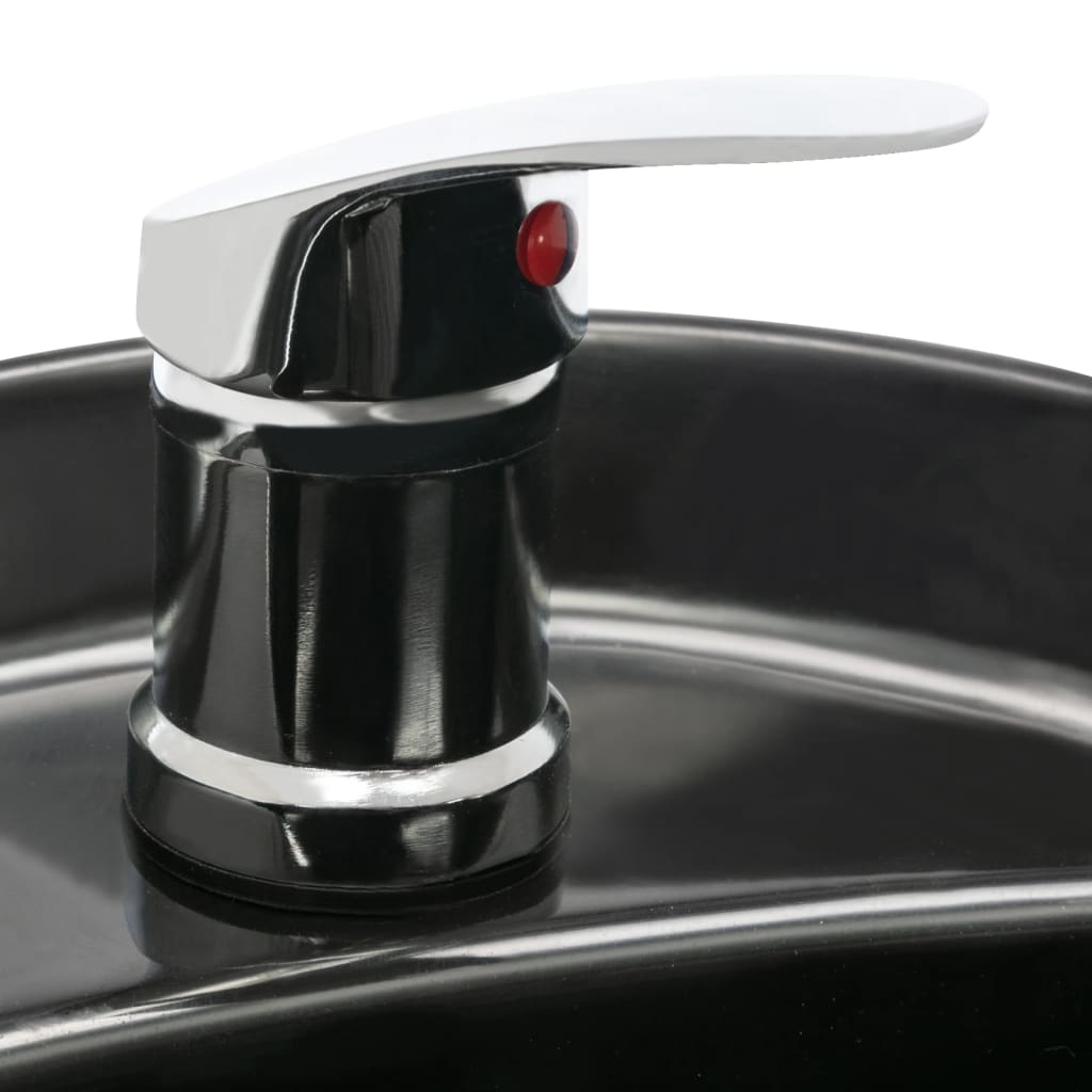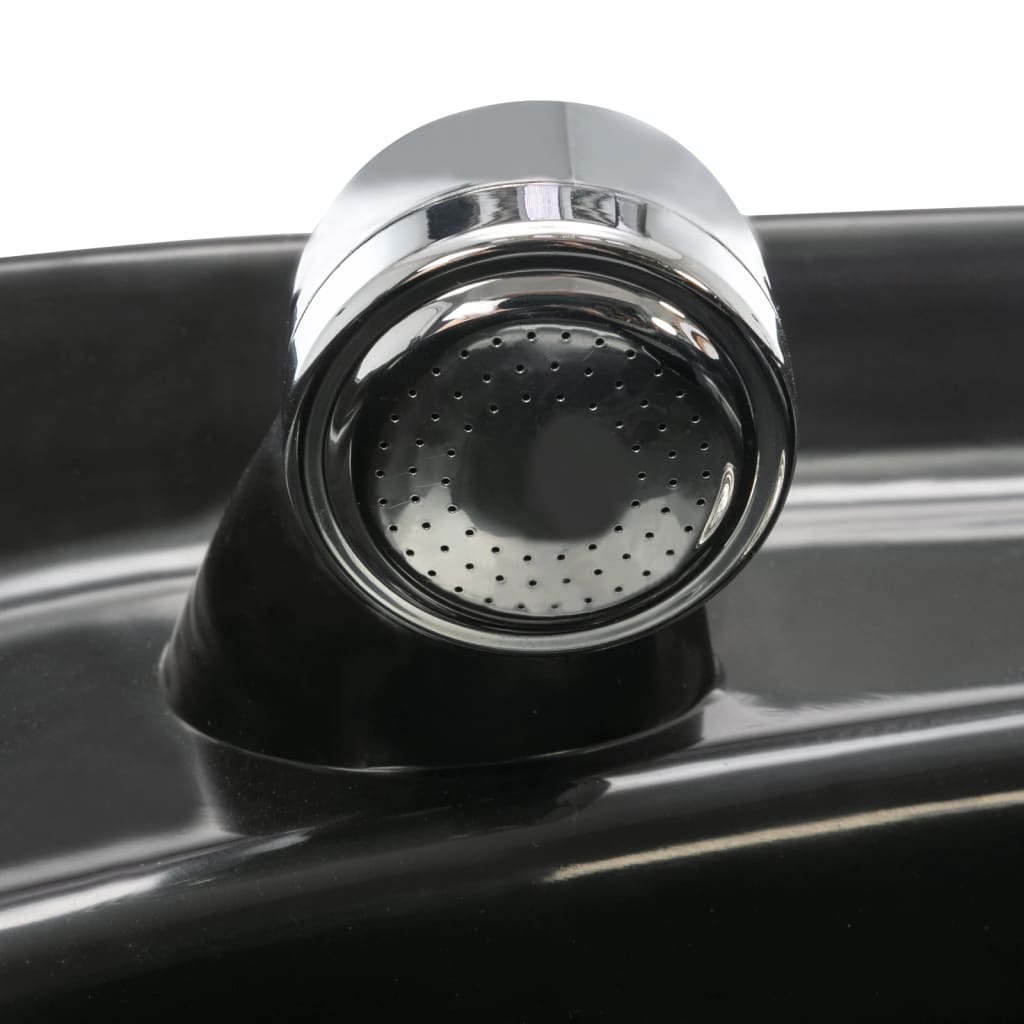 This shampoo chair mixes style and function perfectly, made for hair salons and barbershops, making clients comfy during washes. Its sleek black look and modern vibe make it appealing to many while providing top comfort and durability.