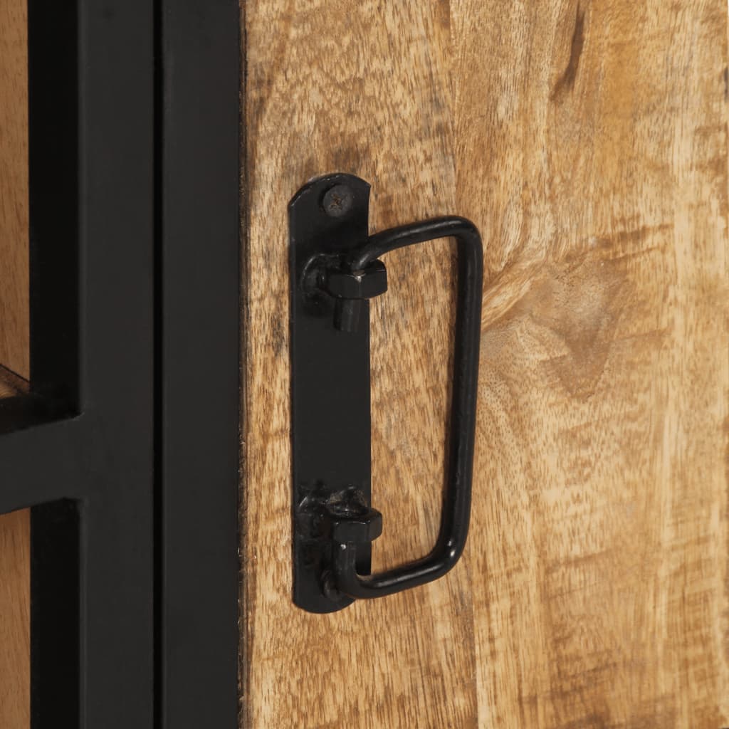 - The mix of solid mango wood and a sturdy iron frame makes for a striking piece that stands the test of time. Its unique texture and rich color variations give it character, so each cabinet is one-of-a-kind.