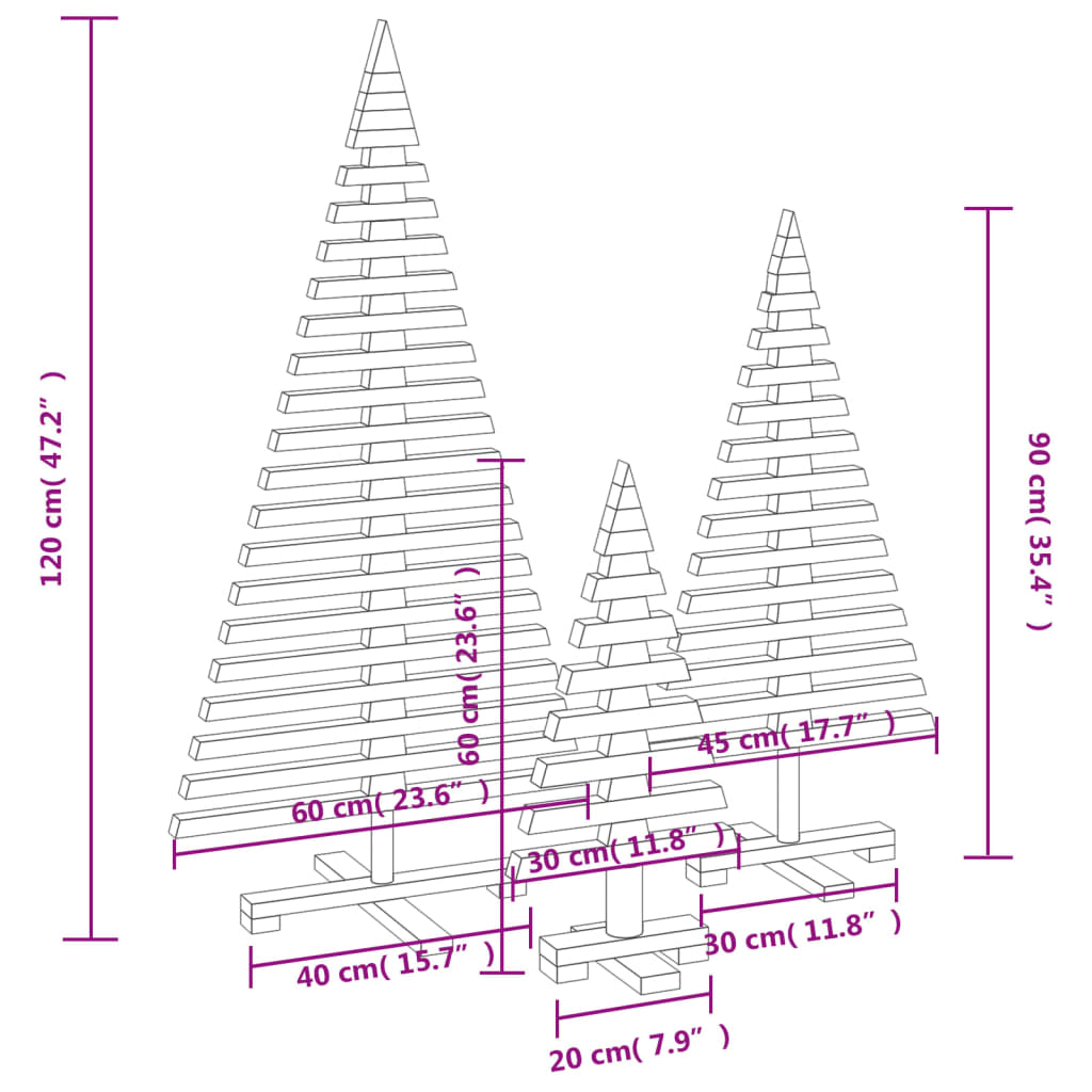 Wooden Christmas Trees for Decoration 3 pcs Solid Wood Pine